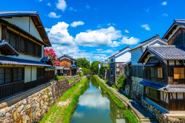 近江八幡は、歴史・商人文化・スイーツが一度に楽しめる散策に最適な街。白壁の蔵が映える八幡堀や、厳かな日牟禮八幡宮を巡り、春には花や新緑が水辺を彩る豊かな景色が広がります。