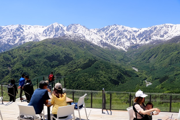 北アルプスが一望できる標高1,289mにある山頂テラス。正面には白馬三山の絶景が広がります。雪山と新緑のコントラスト、多彩なアクティビティを楽しむことができます。